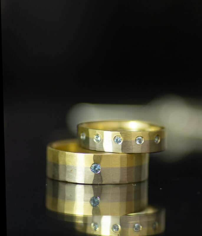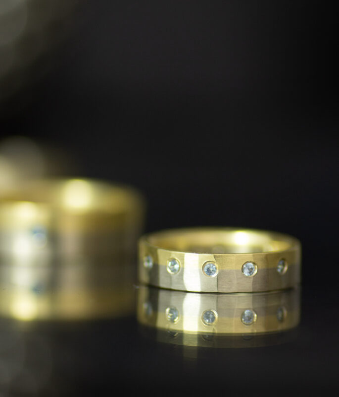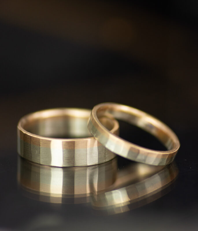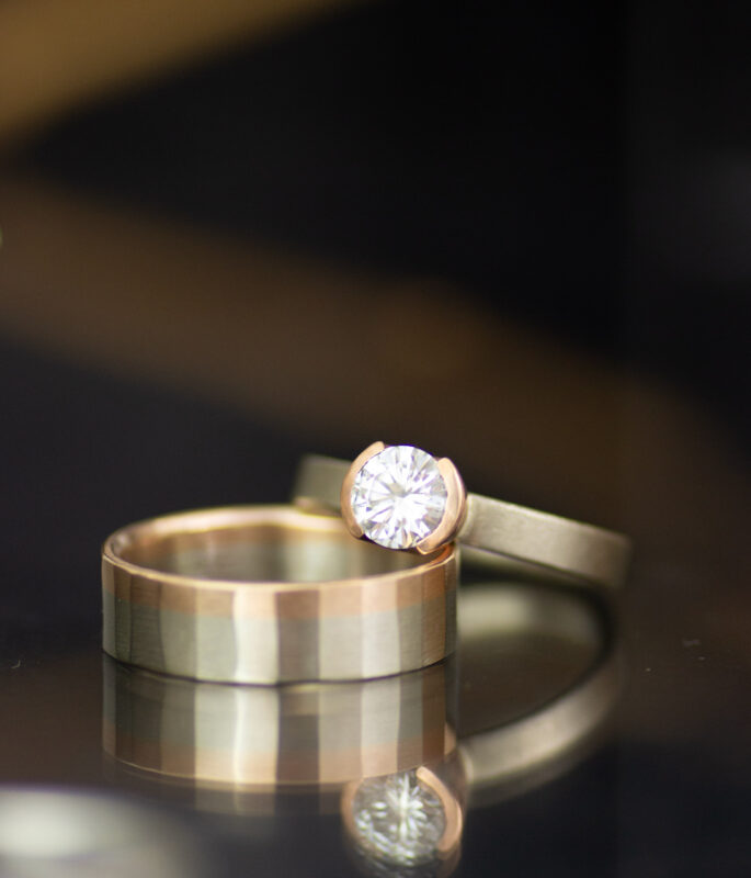 Perfect for representing the melding of two into one, this piece is an excellent choice for individuals of any gender who are attracted to contrast and who don’t want to have to choose between metals. Flip the colors to create a complimentary set for couples.