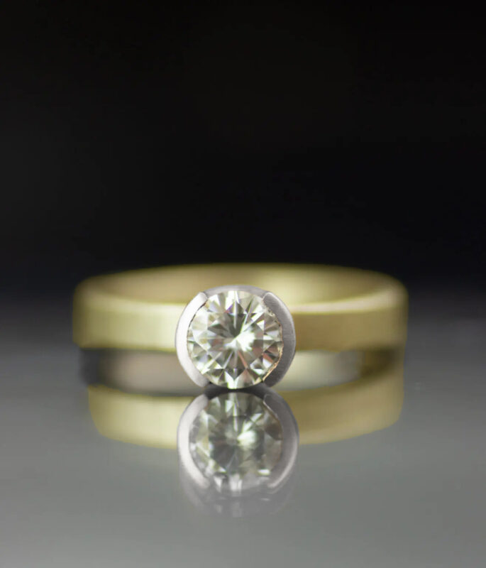 Lab-grown Diamond Mixed Metals Modern Half Bezel Engagement Ring
