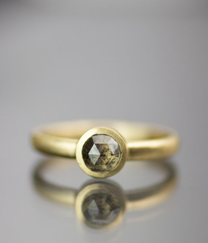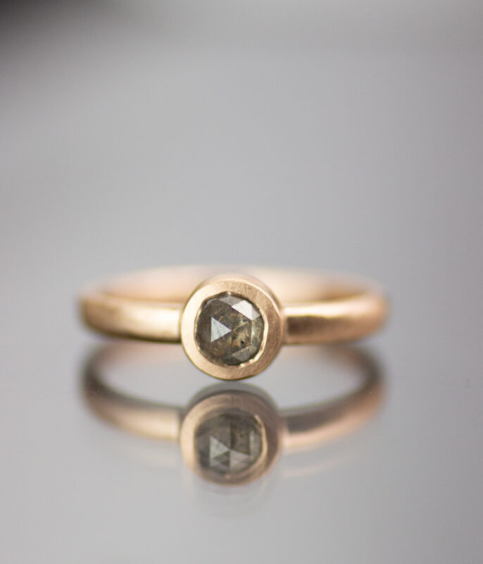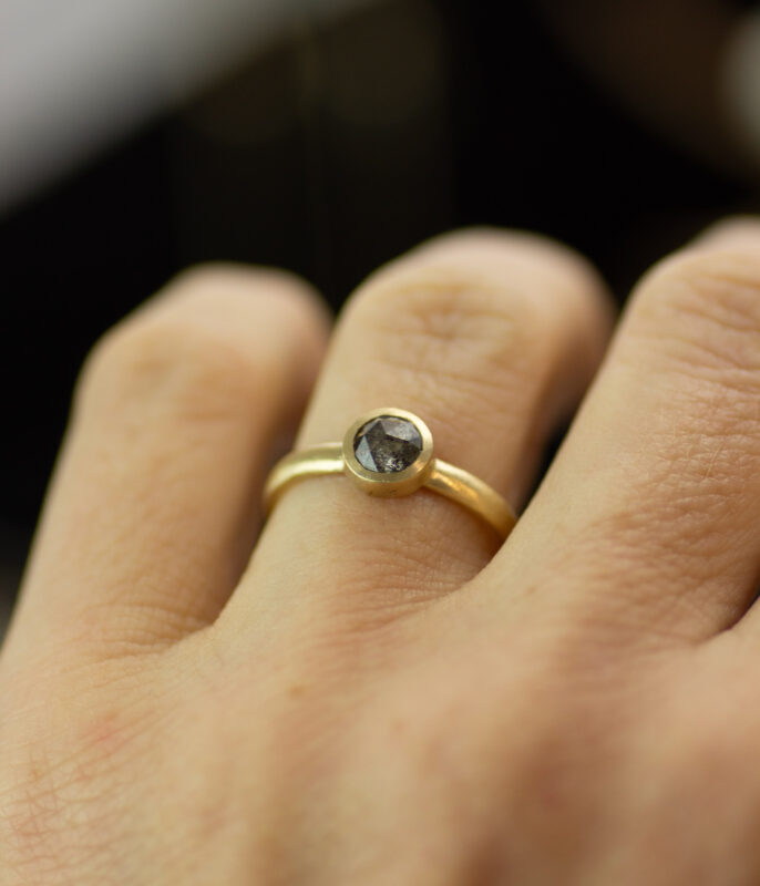 Rose Cut Salt and Pepper Diamond Modern Bezel Engagement Ring