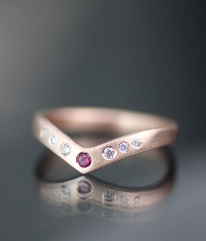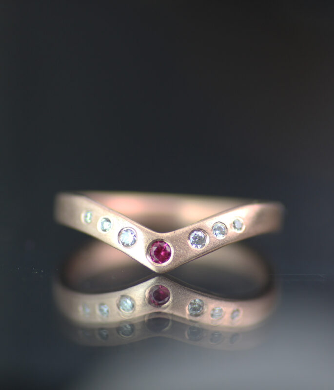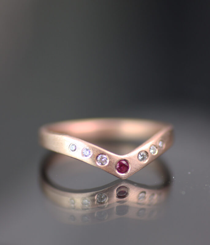 Ruby V Graduated Diamond Rose Gold Engagement Ring or Wedding Band
