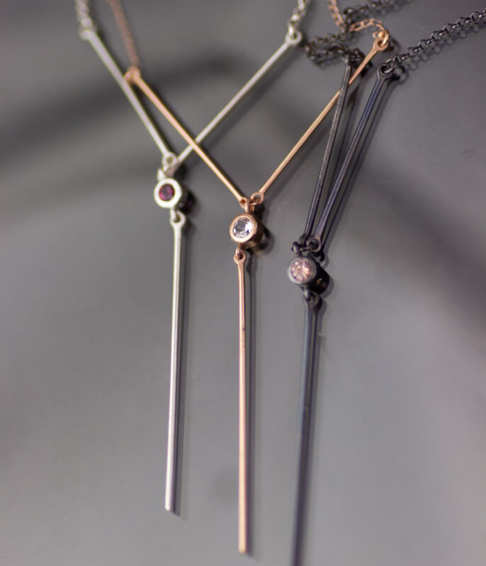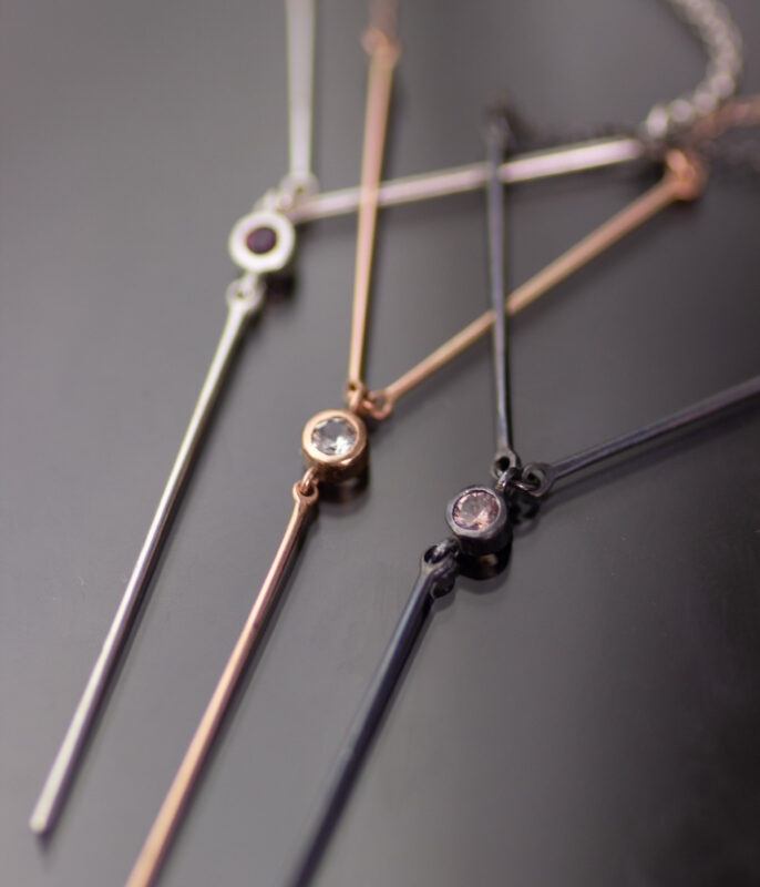 Sticks and Gemstone Minimalist Sapphire or Diamond Necklace